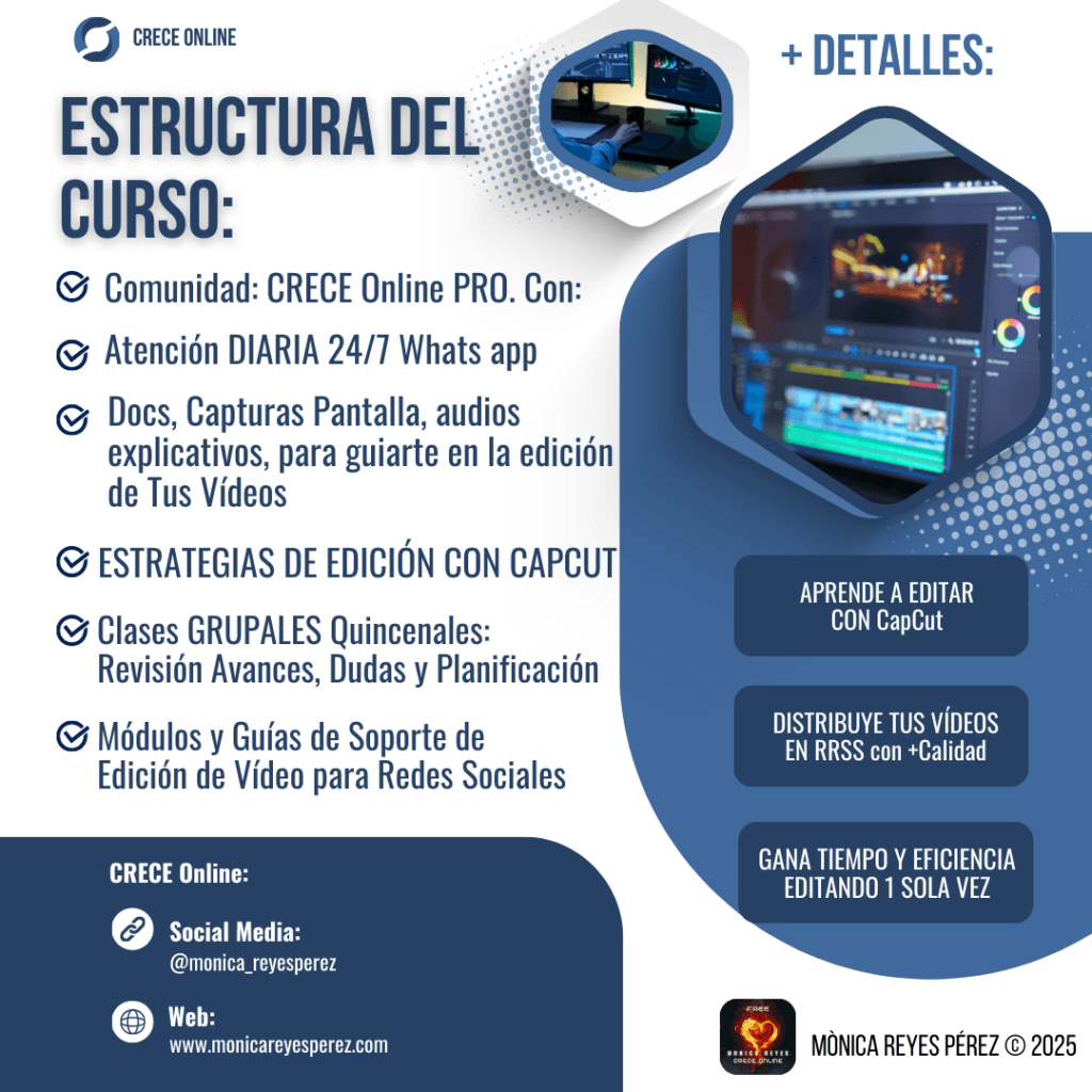 Consigue en 3 meses dominar la Edición de Tus Videos con CapCut PRO: Añade efectos de Sonido, Música, Etiquetas, Subtítulos vistosos, Mejora la calidad del audio, etc